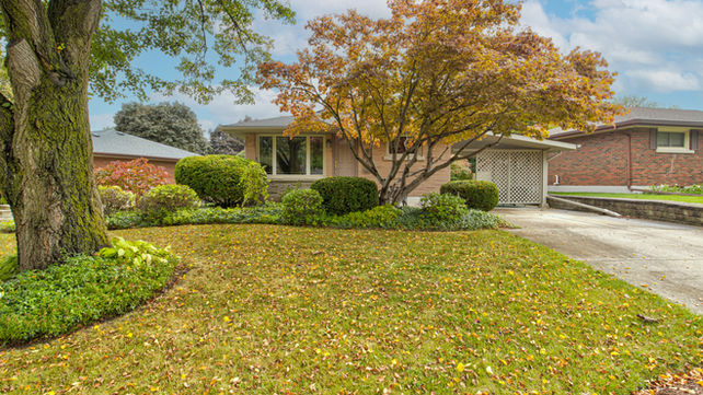 This one-family-owned brick bungalow sits on a quiet, centrally located street. The mature treed lot features easy-care perennial gardens, a cement double driveway, and a carport currently used as a private sitting area. Inside, the living room offers huge windows and cozy carpet, while the rest of the main floor showcases original, well-kept hardwood flooring. The eat-in kitchen has plenty of cabinetry, including glass-front display panels, plus newer appliances. Down the hall are three bedrooms and a 4-piece bathroom. A side door leads to the finished basement with a spacious rec room, 3-piece bathroom, and lots of storage. Updates include most windows, roof with quality shingles (2014), furnace (2023), and updated electrical. Close to shopping, restaurants, schools, parks, and the 401, this home is ready to enjoy at any stage of life.